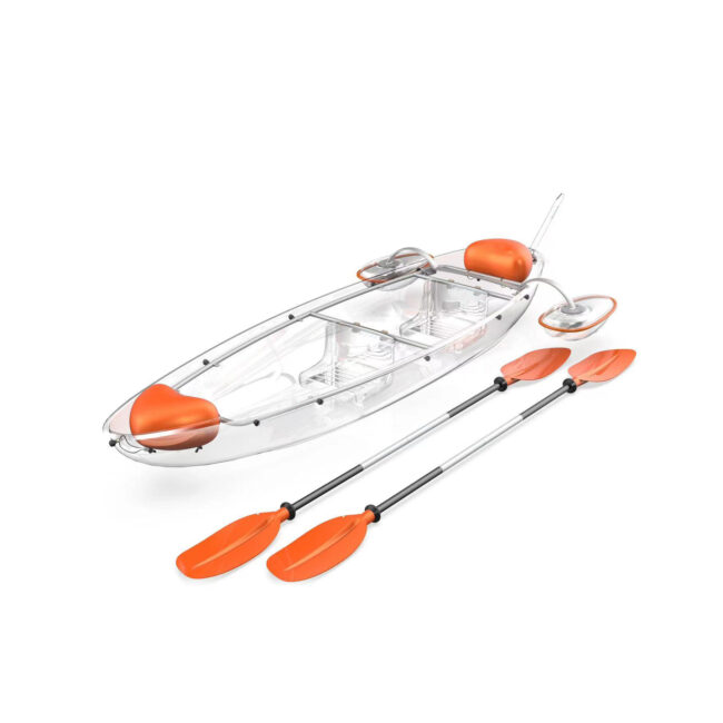 HDTP-004Transparent kayak This 330CM transparent double kayak is made of high-quality PC material to ensure the transparency and durability of the hull, allowing you to enjoy the fun of water with your partner. Equipped with reinforced aluminum brackets, it improves the stability and carrying capacity of the hull, ensuring your safe sailing. The airbag design…